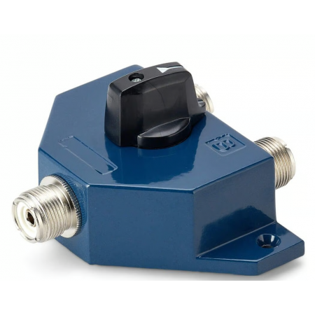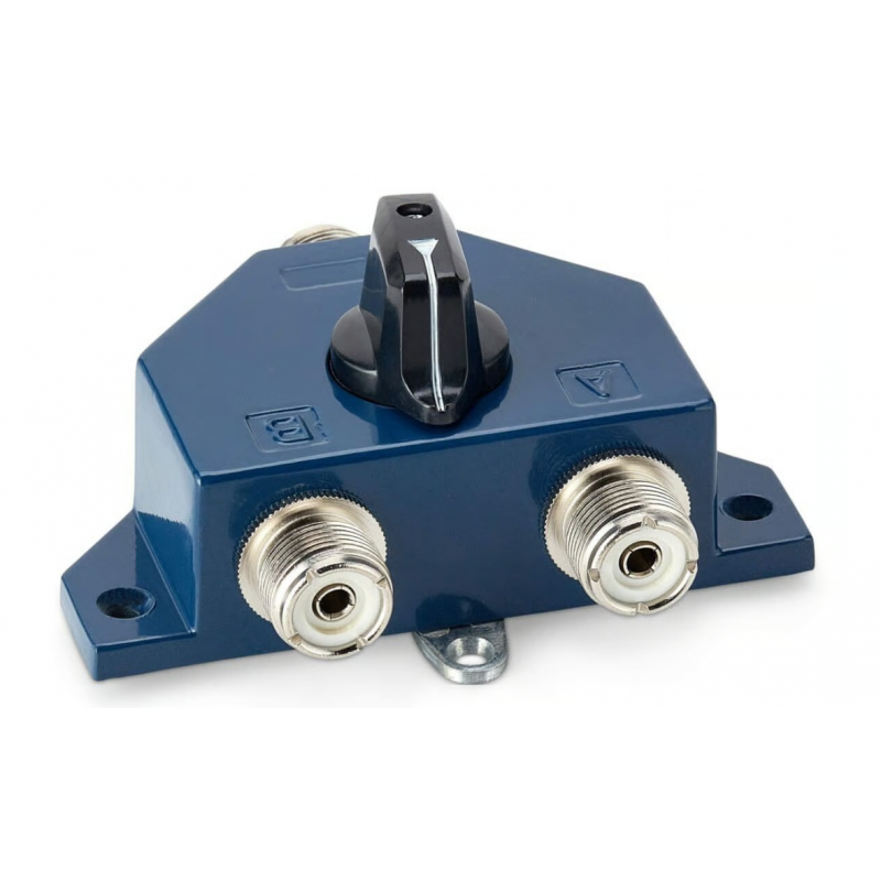 Le CS201 est un commutateur coaxial deux voies équipé de connecteurs SO‑239 (UHF femelle), conçu pour permuter facilement entre deux antennes ou deux émetteurs.