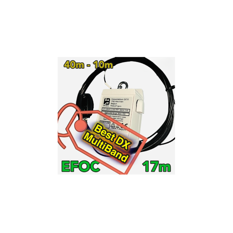 L’EFOC17 est une antenne HF End-Fed Off Center compacte et performante, spécialement conçue pour les radioamateurs recherchant une solution multibande efficace, facile à installer et durable. Grâce à sa longueur optimisée, elle est idéale pour les espaces restreints, les opérations field-day, les stations portables ou les installations fixes discrètes.
