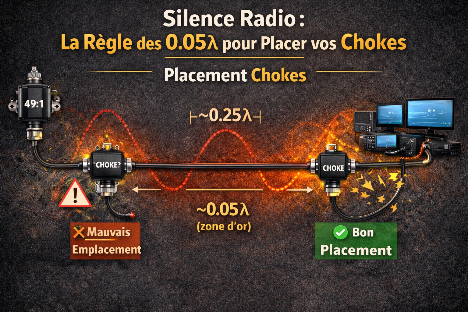Ne vous contentez pas de visser le choke là où c'est pratique. Mesurez votre câble, appliquez la règle des 0.05λ, et profitez d'une réception plus calme et d'une station sans RFI.