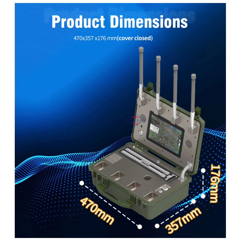 Ce système portable de détection de drones en valise est conçu pour identifier et suivre les UAV de manière 100 % passive, sans émettre le moindre signal. Grâce à la prise en charge des bandes clés 900 MHz, 1.4 GHz, 2.4 GHz, 5.2 GHz et 5.8 GHz, il capte efficacement les communications drones–télécommandes les plus courantes.