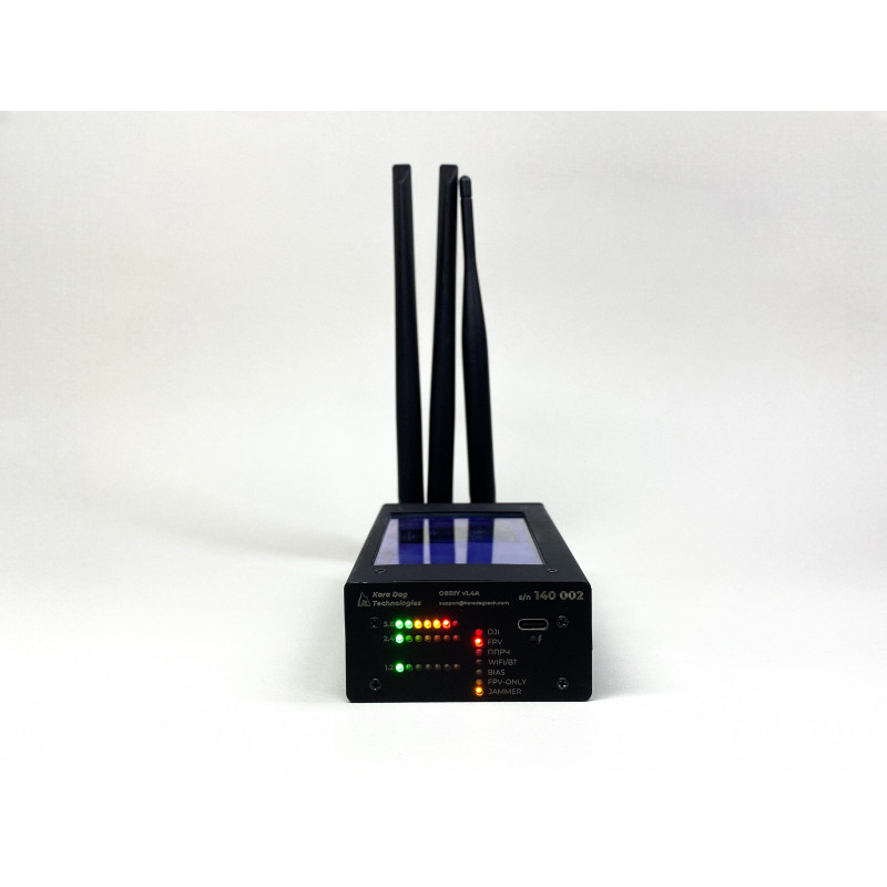 Le Kara Dag Obriy 1.4B est un détecteur de drones personnel, conçu pour répondre aux besoins opérationnels les plus extrêmes. Il analyse les signaux vidéo sur trois bandes de fréquences clés (1.2G, 3.3G, 5.8G) et détecte les drones jusqu'à 11 km, y compris les DJI Mavic 3 et drones FPV. Grâce à sa technologie de détection par empreinte de signal, il minimise les fausses alertes tout en restant ultra-réactif face à une menace imminente.