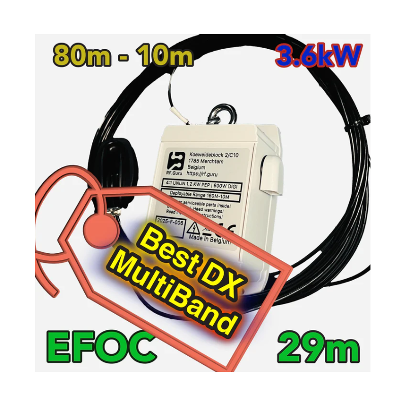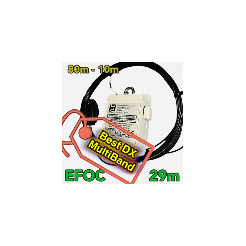 L’EFOC29 est une antenne HF End-Fed Off Center conçue pour offrir d’excellentes performances multibandes avec une installation simple et flexible. Pensée pour les radioamateurs recherchant efficacité, compacité et polyvalence, elle constitue une solution idéale pour les stations fixes, portables ou discrètes.