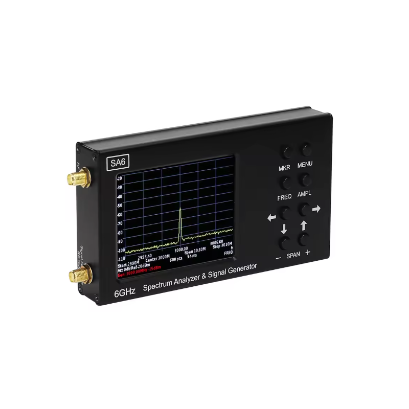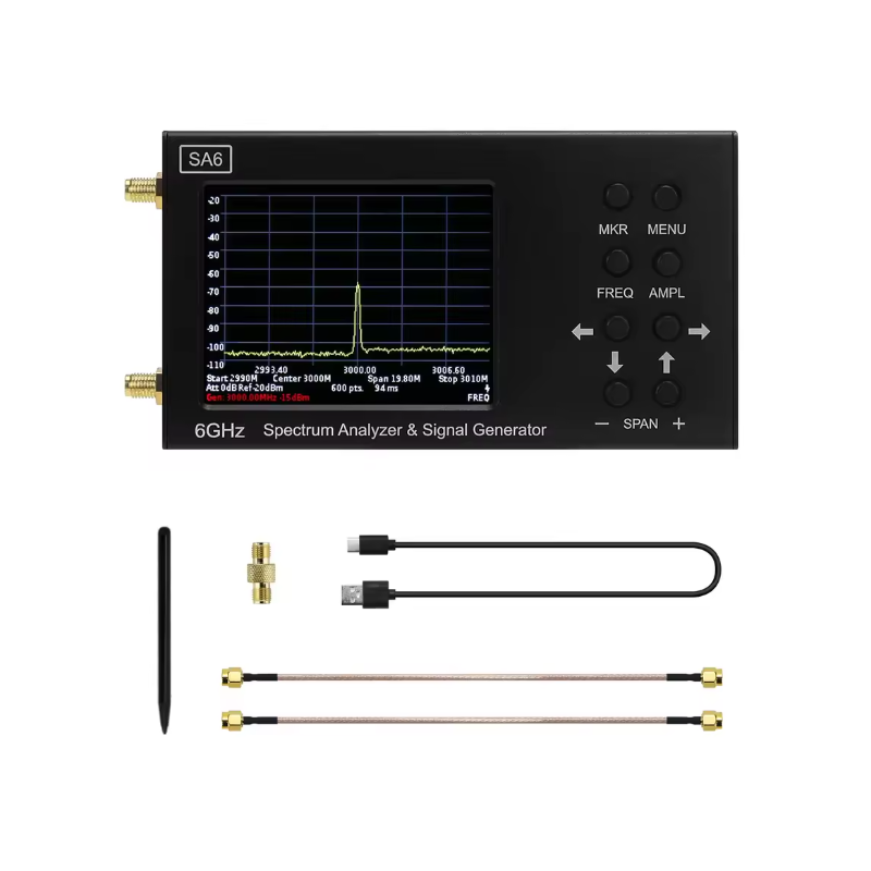 Technologie Avancée pour les Professionnels Découvrez le SA6, un analyseur de spectre portable révolutionnaire, conçu pour afficher le spectre de signaux dans une plage de fréquences de 35 à 6200MHz. Cet outil est indispensable pour les professionnels travaillant avec des technologies diverses comme le Wi-Fi, 2G, 3G, 4G, LTE, CDMA, DCS, GSM, GPRS, GLONASS, et plus encore. Sa capacité à traiter les signaux de toutes les technologies couramment utilisées le rend essentiel pour les techniciens de service et les amateurs de radio.